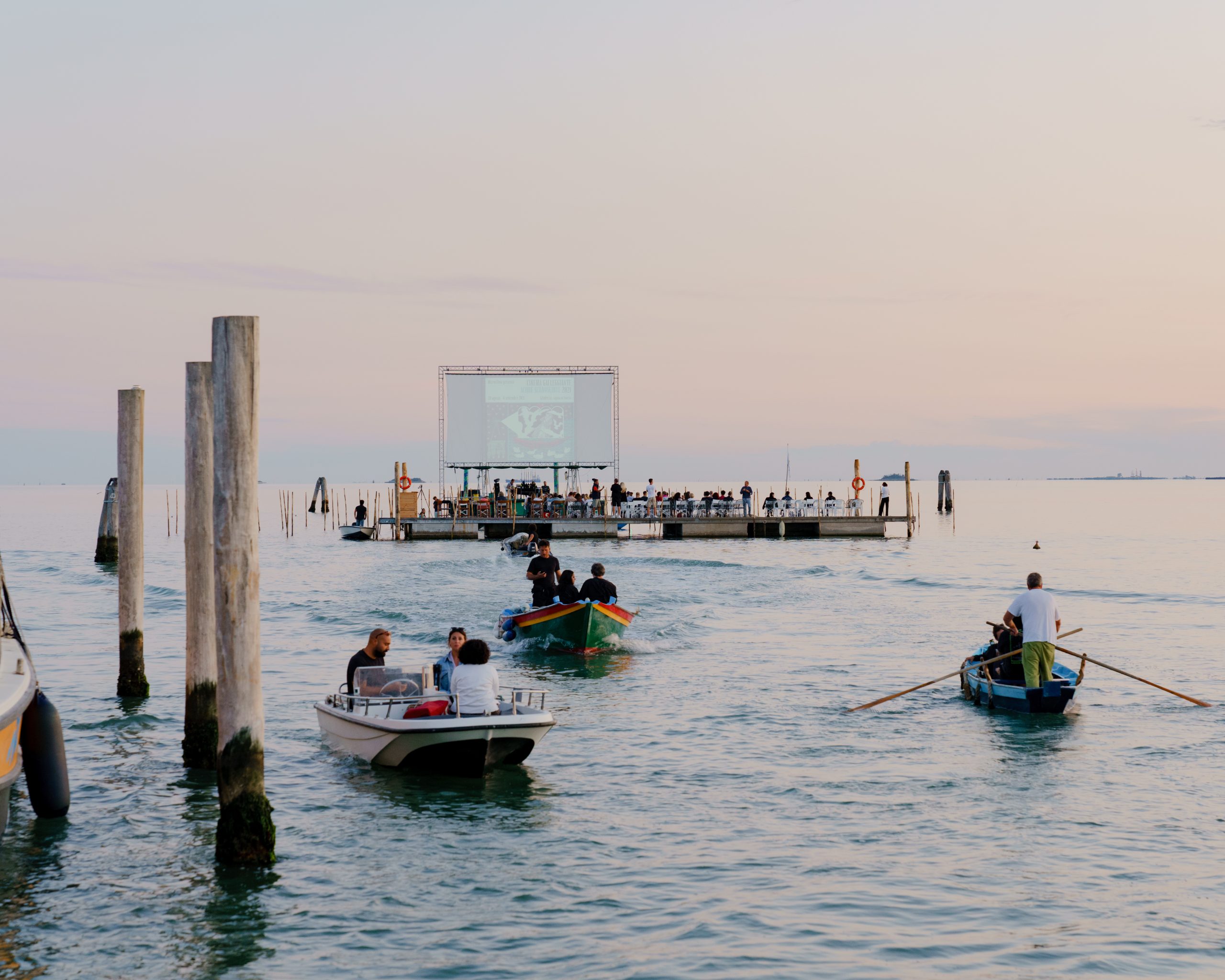 Dal 25 agosto al 10 settembre 2022 si rinnova l’appuntamento con Cinema Galleggiante – Acque Sconosciute, la rassegna culturale che si svolge sulle acque della laguna di Venezia. Film, video, performance musicali e teatrali che coinvolgono autrici e autori sia internazionali sia locali, vengono presentati su un palcoscenico e uno schermo nelle acque retrostanti l’isola della Giudecca, all’altezza del Rio de Sant’Eufemia.
